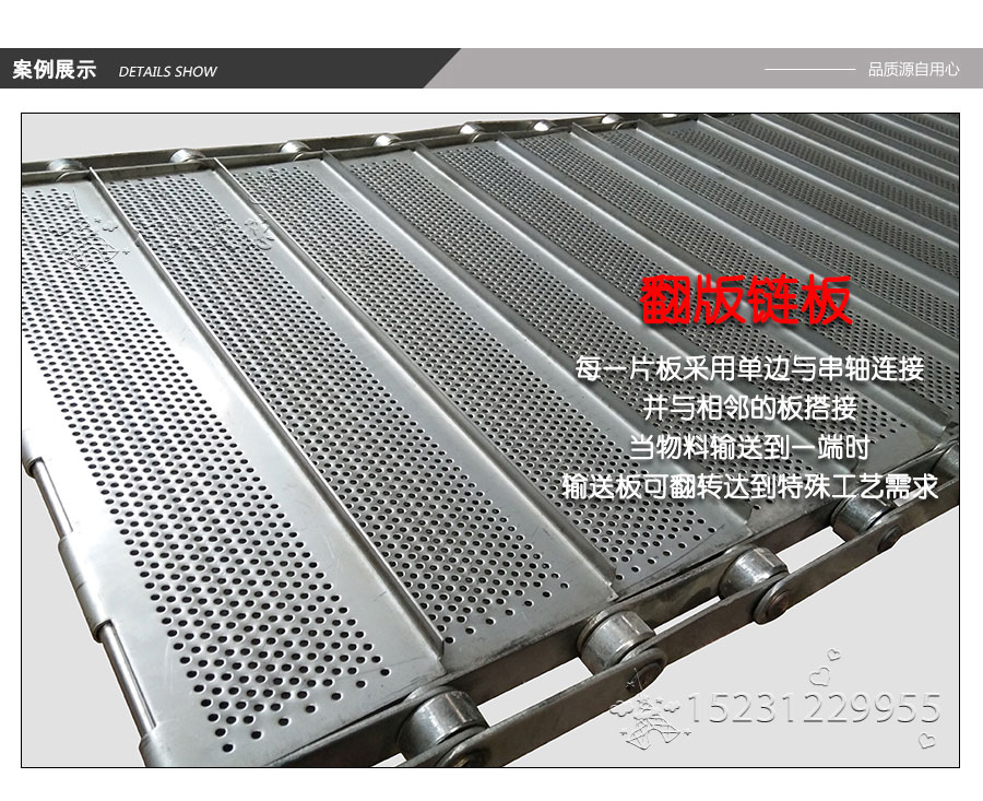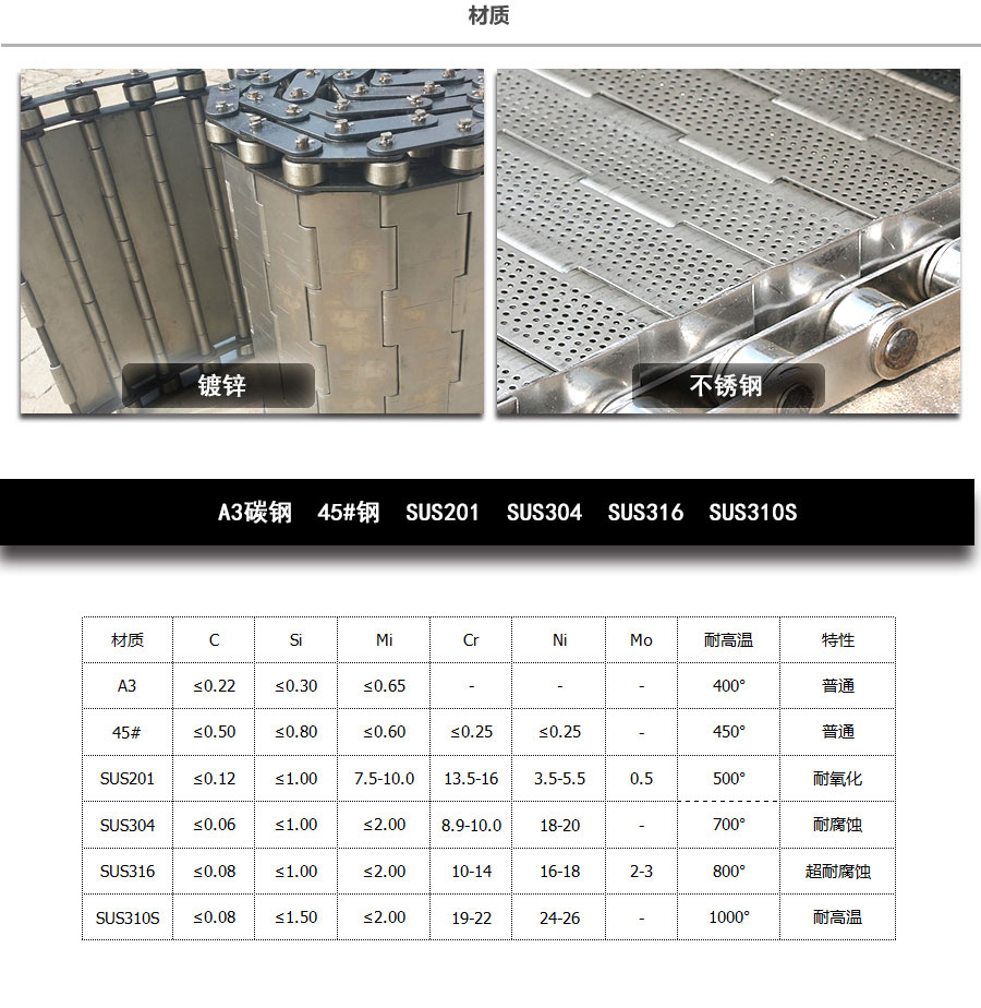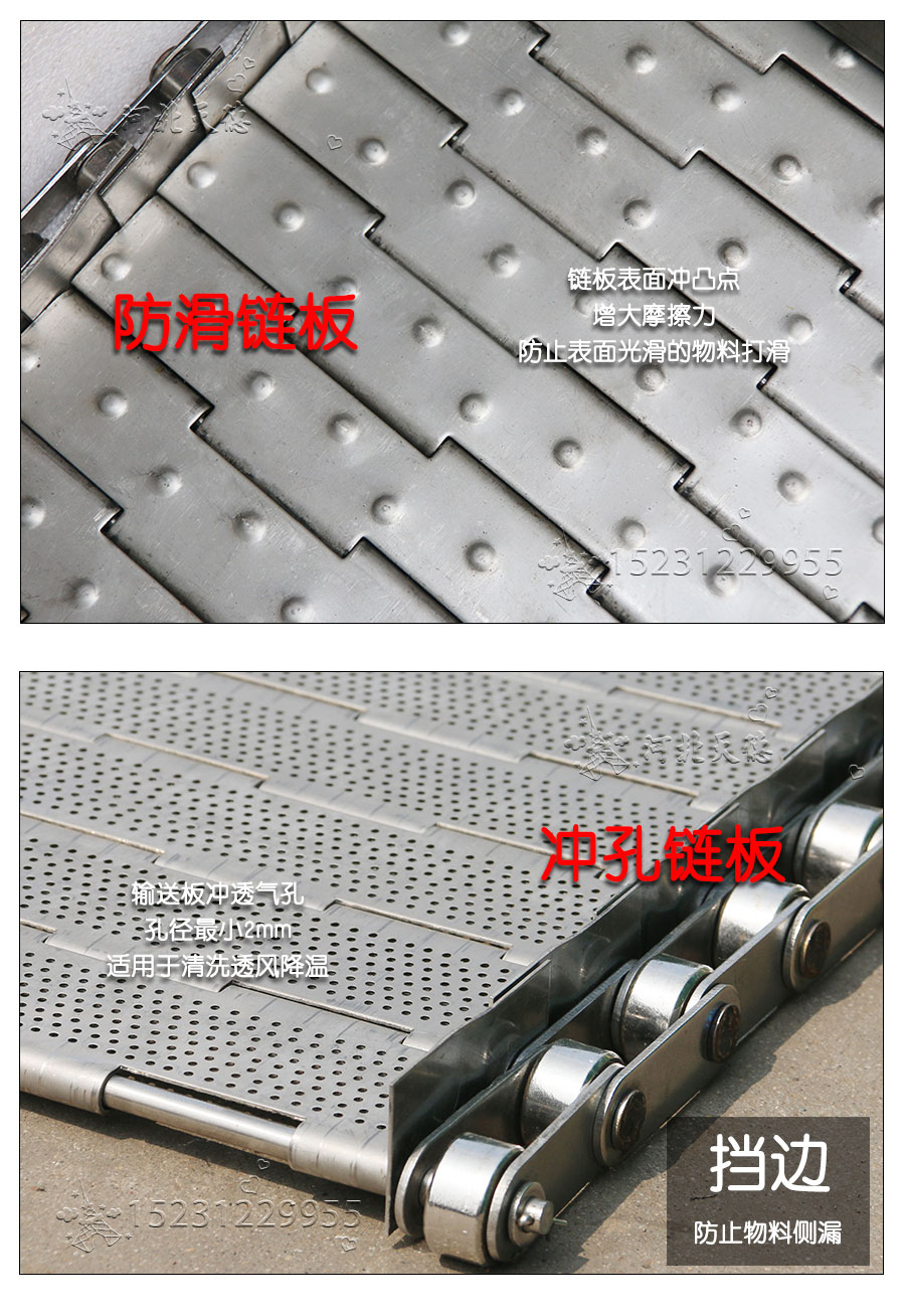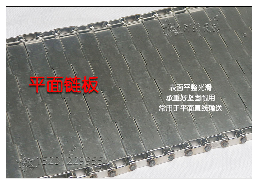 輸送鏈板非常堅固由鏈條驅動采用金屬板材生產,適合用于輸送細小的高密度物件,輸送過程中運轉平穩(wěn)安裝更換方便,成本相對較高使用壽命較長用于中等和大負荷輸送。鋼板彎曲形成合葉,使用支軸將合葉和鏈條串在一起。兩端的鏈條可以使用開口銷或者墊圈來固定,使用開口銷方便拆卸,維護方便。