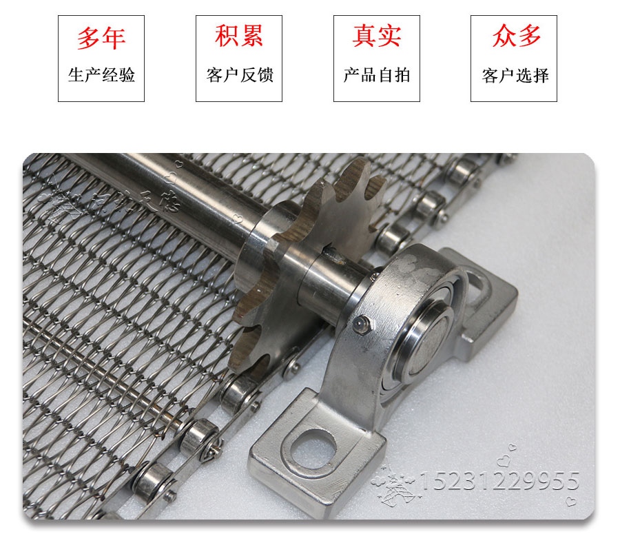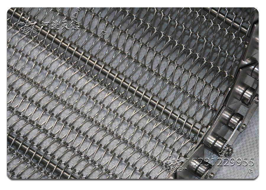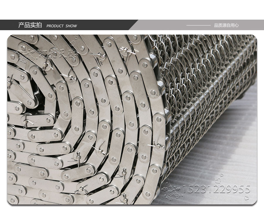 鏈條式網(wǎng)帶是由鏈條驅(qū)動(dòng)的輸送網(wǎng)帶,一般都由鏈條帶動(dòng)小軸再帶動(dòng)網(wǎng)帶運(yùn)行。 網(wǎng)帶都采用軋牙串條、左右網(wǎng)條二根串,并大小網(wǎng)條連接而成,大網(wǎng)條內(nèi)穿進(jìn)小軸,小軸二端穿入鏈條孔,從而達(dá)到鏈條驅(qū)動(dòng)輸送網(wǎng)帶。鏈條網(wǎng)傳動(dòng)平穩(wěn)、傳動(dòng)力矩小
