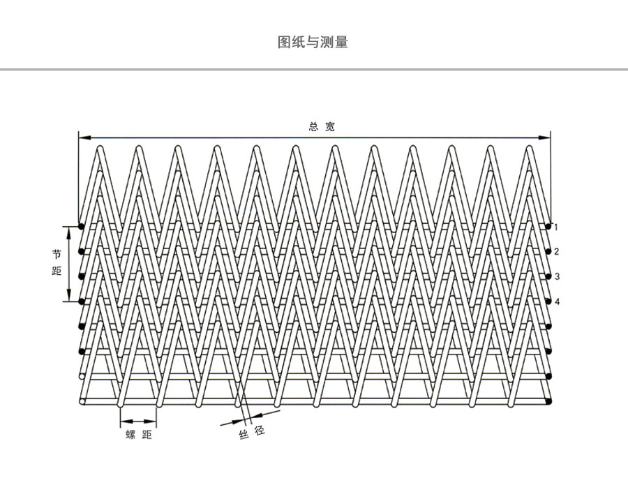 人字形網帶材質:有碳鋼、鍍鋅鐵絲,彈簧鋼絲、耐腐蝕耐高溫不銹鋼材料、A3低碳鋼、45#鋼、1Cr13耐熱鋼、201不銹鋼、304不銹鋼等。